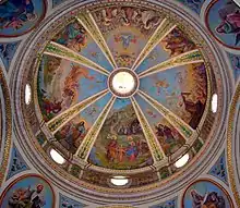 The monastery's main church resembles the shape of a cross. Its dome is decorated by colorful paintings based on motifs from both the Old and New Testament: Elijah rising to heaven, David stringing his harp, the prophet Isaiah, the Holy Family and the Four Evangelists. Latin inscriptions of biblical verses are written around the dome.