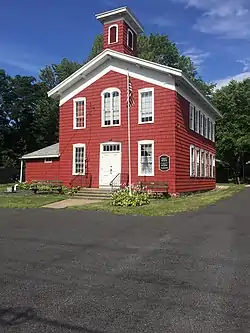 Sterling District No. 5 Schoolhouse is a historic school building located at Sterling in Cayuga County, New York. It was built about 1853 and is a two-story hewn timber frame building with a front-facing gable roof, built above a mortared rubble stone foundation. It is rectangular in shape and measures 28 feet by 38 feet. It was used as a school into the 1950s. It has since been used by the Sterling Historical Society for museum display space and as the Town Hall.[2]
