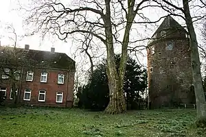 Unlike the other castles of East Friesia, Stickhausen Castle was never the seat of the East Frisian chieftains. It was built around 1345 by the city of Hamburg to protect their westbound trade routes. After intense debate, the Hamburg pledged them in about 1453 to the chieftain and later to Count Ulrich I of East Frisia. This castle was built as the replacement for the older border fortress Schlüsselburg in Detern. This fortress had been part of a border defense line against the adjacent County of Oldenburg and secured access to East Frisia.[2] After the Schlüsselburg fortress had been destroyed and rebuilt several times, it lost its importance after the construction of Stickhausen Castle and is no longer mentioned in documents.