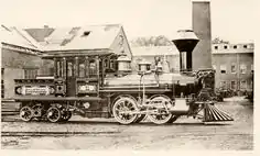 ![]() Builder's photograph of Stockton & Ione Railroad Locomotive No 1 Stockton at the Mason Locomotive Factory in 1875 | |