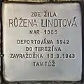 Růžena Lindtová was born on 5 December 1866. Her last residence in front of deportation was in Prague VII, Schillerova 43. On July 27, 1942, she was deported to Theresienstadt concentration camp by transport AAu. Their transport number was 250 from 1,002. Růžena Lindtová was murdered on March 13, 1943, in Theresienstadt.[17][18]