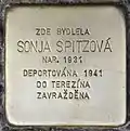 Anna Spitzová was born on 17 February 1902 in Brandýs nad Labem. She was married to Ařnost Spitz, the couple had two daughters, Marie (born 1928) and Sonja (born 1931). The family's last place of residence before deportation was in Prague XIX, Hoferova 3. On 10 December 1941 father, mother and daughter were brought from Prague to Theresienstadt concentration camp by transport L t. Their transport numbers were 295, 296 and 298 of 1,006. There, the family was interned for almost three years and were finally separated. On 28 September 1944, Ařnost Spitz was deported to Auschwitz concentration camp by Transport Ek. Eight days later, on 6 October 1944, Anna and Sonja Spitzová were deported to Auschwitz. Their transport numbers were 75 and 77 of 2,500. In the end, all three were murdered by the Nazi regime, but the place and date of death are known of Ařnost Spitz: January 18, 1945 in the Dachau concentration camp.[33]