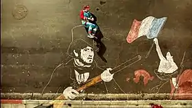 A music video for "Strawberry Swing" was directed by Shynola and premiered on 4Music and Channel 4 on 29 July 2009.[15] The video, which is animated using stop motion, features Chris Martin lying on the ground against animated chalk drawings that tell a surreal story with him as the main character.[15] The story begins with Martin waking up in his house. Once he sees that a woman is being held hostage by a giant squirrel, he turns into a superhero and attempts to save her. Along the way, Martin faces attacks from the squirrel and a giant fish in the ocean.[15] When Martin finally gets to the squirrel's home, he rescues the lady by drawing a nut-shaped bomb that blows the squirrel up in a colorful explosion. The two then fly away into space together and begin to kiss.[15] At the end of the song, the animation stops and Martin gets up off the chalk-colored floor in real speed and walks away.[15] The video was nominated in the Best Animation in a Video category at the UK Music Video Awards 2009.[16] In August 2010, the video was nominated for "Breakthrough Video" at the 2010 MTV Video Music Awards.[17]