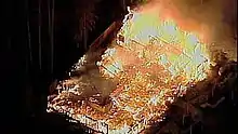 On March 3, 2008, four multimillion-dollar homes were set on fire in Echo Lake, Washington, on Echo Lake Road, off State Highway 522.[1] Slogans spray-painted on one of the burned houses' fences attributed the arson to the Earth Liberation Front, with words such as "Built Green? Nope black! McMansions in RCDs r not green. ELF." ELF is a collective name for anonymous and autonomous individuals or groups that, use "economic sabotage and guerrilla warfare to stop the exploitation and destruction of the natural environment".[2]