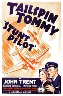 Stunt Pilot is a 1939 American adventure film directed by George Waggner and written by Scott Darling and George Waggner.[1] The film is based on the comic strip Tailspin Tommy by Hal Forrest and Glenn Chaffin.[2] Stunt Pilot stars John Trent, Marjorie Reynolds, Milburn Stone, Jason Robards Sr., Pat O'Malley and George Meeker.[3] Following the success of Mystery Plane (1939), Stunt Pilot, the second in the "Tailspin Tommy" series, was released on July 2, 1939, by Monogram Pictures.[4]