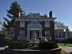 The house features Colonial Revival stylistic elements on a structure that follows an Italian Villa-type plan.[2] Its most striking features are the two cyrtostyle porches with balconies above on the north and west elevations. The main facade on the west features a Palladian window above the porch. The basement-level garage was added sometime before 1924, and the sun porch above it was added in the mid-1950s. It was listed on the National Register of Historic Places in 1984.[1]