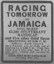 Notice in the Brooklyn Daily Times of May 20, 1918, for the Stuyvesant Handicap