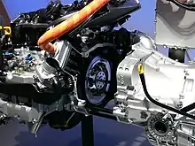 The TPH drivetrain featured an electric motor-generator sandwiched between the gasoline motor, which used the Miller cycle, and the automatic transmission. The electric motor was intended to reduce turbo lag and boost fuel economy, with an estimated consumption of 40 mpg‑US (5.9 L/100 km; 48 mpg‑imp) on the EPA combined city/highway cycle.[7] The B5-TPH used manganese lithium-ion batteries.[7][8]