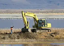 The Summer Lake Wildlife Area is extremely important because its wetlands host hundreds of thousands of migratory birds each year. In 2005, the Oregon Department of Fish and Wildlife joined with the U.S. Department of Agriculture's Natural Resources Conservation Service, Oregon Hunters Association, Ducks Unlimited, and the North American Wetlands Conservation Council to enhance approximately 1,000 acres (4.0 km2) of seasonally flooded wetland habitat in the River Ranch area of the wildlife area. The project replaced a series of diversion structures along the Ana River supplying water to the adjacent wetlands. The project significantly improved the efficiency of the water management system, benefiting both the river and wetlands.[11] In 2009, the United States Army Corps of Engineers built three islands in the Summer Lake wetlands. The islands provide additional nesting sites for Caspian terns and other birds. The project was a joint effort by the Oregon Department of Fish and Wildlife, Army Corps of Engineers, Bureau of Land Management, United States Fish and Wildlife Service, United States Geological Survey, National Oceanic and Atmospheric Administration, Oregon Department of State Lands, and Oregon State University.[12] In 2010, a project financed by the State of Oregon, the Lake County Soil and Water Conservation District, Summer Lake Irrigation District, and Ducks Unlimited revitalized an additional 3,000 acres (12 km2) nesting habitat.[13]