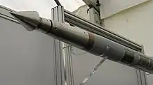 The Superkavitierender Unterwasserlaufkörper (lit. Supercavitating Underwater Running Body, formerly known as Barracuda) was a German close-range supercavitating torpedo technology demonstrator[1] designed by the Diehl BGT Defense and developed in cooperation with the German Navy. The supercavitating torpedo for a "close-range defense of underwater targets"[1] was presented to the public in 2005 as a prototype, but it never went into development and procurement.[3]