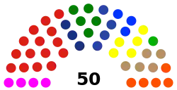 As of the 2019 election, the council has 50 elected members, with 5 electoral districts.[10] The current speaker is Adi Sutarwijono of the Indonesian Democratic Party of Struggle, holding the position since 24 August 2019.[11]
