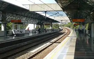 Suramericana is the third stop on line B of the Medellín Metro going from the center of the city to the west. It is one of five stations located by the La Hueso ravine.[1] The station is elevated and is also located near the Medellín Museum of Modern Art, the National University of Colombia, and El Volador hill. Outside the station there is the statue Monument to Life by Rodrigo Arenas Betancourt and the tiled mural Our Lady of the Macarena by Gabriel Ripol. The station was opened on 28 February 1996 as part of the inaugural section of line B, from San Javier to San Antonio.[2]