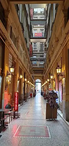 Suriye Pasajı (Syria Arcade in Turkish), or Cité de Syrie in French, is a historical six-storey[1] shopping arcade located in İstanbul, Turkey, in the Asmalımescit subdistrict of Beyoğlu. The arcade is situated on İstiklal Avenue 166 (formerly 348).[2] The ground floor of the arcade hosts a wide array of businesses, meanwhile upper floors are being mostly used for residential accommodation.[1] It was built in 1908.