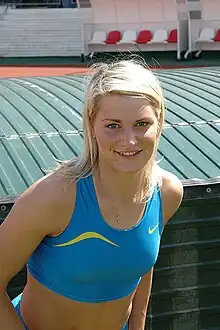 Svetlana Bolshakova (Russian: Светлана Большакова; born 14 October 1984) is a Russian-born triple jumper of who competes for Belgium internationally. She married Belgian high jumper Stijn Stroobants in August 2006 and acquired the Belgian nationality in July 2008.