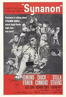 Synanon is a 1965 American drama film directed by Richard Quine and starring Chuck Connors, Stella Stevens, Alex Cord, Richard Conte, Eartha Kitt and Edmond O'Brien. It featured a screenplay by Ian Bernard and was filmed at Synanon in Santa Monica, California.[2]