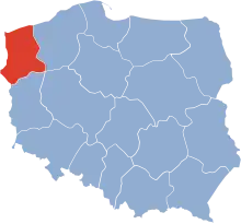 The Szczecin Voivodeship[lower-alpha 1] was a voivodeship (province) with capital in Szczecin, that was centered on the Farther Pomerania. It existed from 1946 to 1975.[1][2] Until 19 February 1947 it was under the administration of Provisional Government of National Unity, which then was replaced by the Polish People's Republic.[3] It was established on 28 June 1946, when it was formed from the territory of the District of the Western Pomerania, and parts of the Gdańsk, and Pomeranian Voivodeships.[1] On 6 July 1950, its eastern half was incorporated into then-established Koszalin Voivodeship,[4] and the voivodeship ceased to exist on 31 May 1975, when it was replaced by then-established Szczecin and Gorzów Voivodeships.[2]