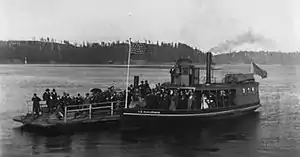 In the summer of 1902, the Richardson, under Captain M.M. Davis, a resident of Newport, operated between Newport and the railhead at Yaquina, where passengers from inland points would detrain for transport by water to the ocean resorts.[27][28] Captain Davis had built a passenger-carrying barge to be lashed on to the steamer, and with it, he said the vessel could transport 500 people at once.[27] The 1902 summer season was reported to have been the best for the seaside resorts since the summer of 1897.[27] A later critic of the Richardson, B.F. Jones, stated that even in the best condition, the steamer was never licensed to carry more than 100 persons.,[9]
