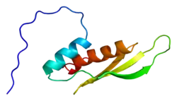HIV-1, the causative agent of acquired immunodeficiency syndrome (AIDS), contains an RNA genome that produces a chromosomally integrated DNA during the replicative cycle. Activation of HIV-1 gene expression by the transactivator Tat is dependent on an RNA regulatory element (TAR) located downstream of the transcription initiation site. The protein encoded by this gene binds between the bulge and the loop of the HIV-1 TAR RNA regulatory element and activates HIV-1 gene expression in synergy with the viral Tat protein. Alternative splicing results in multiple transcript variants encoding different isoforms. This gene also has a pseudogene.[6]