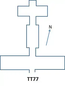 Theban Tomb 77 (TT 77) is located in Sheikh Abd el-Qurna, part of the Theban Necropolis, on the west bank of the Nile, opposite Luxor. It is the burial place of the Ancient Egyptian official named Ptahemhat, who was a child of the nursery, overseer of the works in the temple of Amun, and standard-bearer of the Lord of the Two Lands. The tomb dates to the reign of Tuthmosis IV.[1]