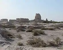 The Ta'er Temple (Chinese: 塔尔寺; lit. 'Pagoda Temple') is the modern name of a ruined Buddhist temple outside of the walls of Suoyang City in Guazhou County, Gansu, China. It has been tentatively identified with the King Ashoka Temple (Chinese: 阿育王寺; pinyin: Āyùwāng Sì) recorded in historical documents, which was first built in the Northern Zhou dynasty (557–581) at the latest. The extant ruins, including the main adobe pagoda and eleven smaller ones, mostly date to the Western Xia dynasty (1038–1227).