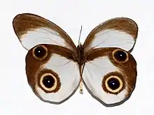 Taenaris macrops, the silky owl, is a butterfly of the family Nymphalidae. The species was first described by Cajetan Felder and Rudolf Felder in 1860.