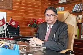 Talat Ahmad is an Indian Earth scientist and former professor at department of Geology, University of Delhi. Currently, he is serving as Chairman of Governing body which oversees Wadia Institute of Himalayan Geology, Dehradun from December 2021 onwards and has taken full charge from 1 June 2022.[3] Previously, he commenced his second stint as vice chancellor of University of Kashmir on 6 August 2018 and served the office till 20 May 2022.[4] After serving as vice chancellor of Jamia Millia Islamia , he resigned from the post a few months short of his full term.[5] He was shortlisted by a committee constituted by the governor to shortlist a panel for the post.[6] He had earlier taken over as Vice-chancellor of University of Kashmir from Professor Riyaz Punjabi on 1 June 2011.[7] Prior to this, he was teaching geology at the University of Delhi.[8]