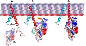 26. Wegener KL, Partridge AW, Han J, Pickford AR, Liddington RC, Ginsberg MH, Campbell ID (January 2007). "Structural basis of integrin activation by talin". Cell. 128 (1): 171–82. doi:10.1016/j.cell.2006.10.048. PMID 17218263. S2CID 18307182.