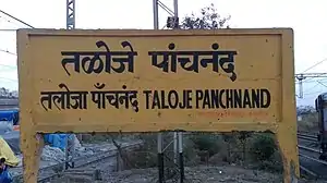Taloja Panchanad (formerly Taloja) is a railway station in Taloja Panchnand in Raigad district on the Vasai Road–Diva–Panvel–Roha route of the Central Line, of the Mumbai Suburban Railway network.