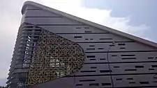 The six floors building sits on a 62,000 square feet area with its structure incorporated green design with the motifs of Sabah's ethnic communities besides the outer motif of the building designed to prevent heat from entering the atrium.[2] Inside the library complex, there is an innovation centre, telecommunication museum with a section for users to share their creative ideas.[2] The main lobby is located on the lower floor while children section on the first floor followed by teen library on the second floor, adult lending on the third floor, adult reference on the fourth floor and multi-purpose room on the fifth floor.[1]
