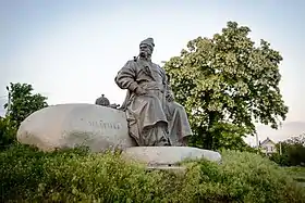 The character of Taras Bulba, the main hero of this novel, is a composite of several historical personalities. It might be based on the real family history of an ancestor of Nicholas Miklouho-Maclay, Cossack Ataman Okhrim Makukha from Starodub, who killed his son Nazar for switching to the Polish side during the Khmelnytsky Uprising. Nicholas Miklouho-Maclay's uncle, Grigory Illich Miklouho-Maclay, studied together with Gogol in Nizhyn Gymnasium (officially Prince Bezborodko's Gymnasium of Higher Learning, today Nizhyn Gogol State University) and probably told the family legend to Gogol.[2] Another possible inspiration was the hero of the folk song "The deeds of Sava Chaly", published by Mykhailo Maksymovych, about Cossack captain Sava Chaly (executed in 1741 after serving as a colonel in the private army of a Polish noble), whose killing was ordered by his own father for betraying the Ukrainian cause.[3]