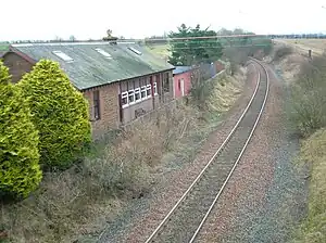 The station opened on 1 September 1870, and closed to passengers on 4 January 1943. The signal box was still operational in 1963 to control the passing loop; both platforms were also in situ.
