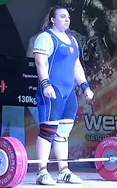 Tatiana Yuryevna Kashirina (Russian: Татьяна Юрьевна Каширина; born 24 January 1991) is a Russian Olympic weightlifter, Olympic silver medalist,[2][3] five time World Champion and eight time European Champion competing in the +90 kg and +75 kg categories until 2018 and +87 kg starting in 2018 after the International Weightlifting Federation reorganized the categories.[4] On 9 September 2023, the Court of Arbitration for Sport annulled over four years of her results due to drugs offenses, stating, "All the competitive results obtained by Tatiana Kashirina from 1 April 2013 until 19 June 2017 were disqualified, with all the resulting consequences, including the forfeiture of any titles, awards, medals, points and prize and appearance money."[5]