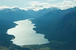 Tatlayoko Lake is a lake on the Homathko River in the western Chilcotin District of the Central Interior of British Columbia, Canada, located on a north-south axis just upstream of the entrance of the series of canyons of the Homathko, including the Great Canyon of the Homathko, on its route to the sea at the head of Bute Inlet. The community of Tatlayoko Lake, British Columbia is located at its northern end.