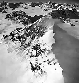 Tazlina Tower is an 8,350-foot (2,545 m) elevation glaciated summit located 26 mi (42 km) northwest of Valdez in the Chugach Mountains of the U.S. state of Alaska. This remote mountain is situated 5.5 mi (9 km) southeast of Mount Powder Top, and 5.7 mi (9 km) northeast of Pilot Peak, near the head of Tazlina Glacier, on land managed by Chugach National Forest. Tazlina Tower was named in association with the glacier, in 1959, by Lawrence E. Nielsen of the Chugach Mountains Expedition, which was sponsored by the Arctic Institute of North America.[2] In turn, the glacier, Tazlina Lake, and Tazlina River are traced to the Ahtna language, "tezlina", meaning "swift river."[3][4] The mountain's name was officially adopted in 1965 by the U.S. Board on Geographic Names.[2]