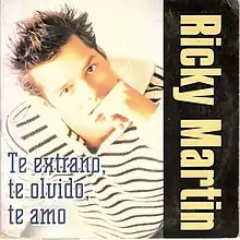 "Te Extraño, Te Olvido, Te Amo" (transl."I Miss You, I Forget You, I Love You") is a song recorded by Puerto Rican singer Ricky Martin for his third studio album, A Medio Vivir (1995). The song was written by Carlos Lara, while the production was handled by K.C. Porter. It was released to radio stations and on CD by Columbia Records as the lead single from the album on September 5, 1995. A Spanish language soft ballad, it is about the singer's dream woman who has left him and as he struggles to forget her, he becomes depressed. It received widely positive reviews from music critics, who ranked it among Martin's best ballads.