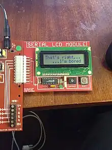 A Higher Technological Studies pupil interfaces a serial LCD module with a STAMP micro-controller.