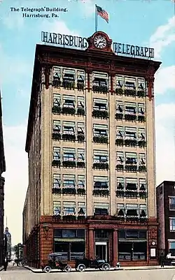 The Telegraph Building was an historic, American commercial building that was located in Harrisburg, Dauphin County, Pennsylvania. It served as the headquarters of the Harrisburg Telegraph, a Republican evening newspaper that was established during the 1800s.[2]