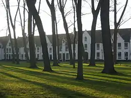 The Princely Beguinage Ten Wijngaerde (Dutch: Prinselijk Begijnhof Ten Wijngaerde) is the only preserved beguinage in the Belgian city of Bruges. There are no more Beguines living there, but since 1927 it has functioned as a convent for Benedictines, founded by canon Hoornaert. In the same year the houses at the west side were also reshaped and enlarged into the Monasterium De Wijngaard, a priory of Benedictine nuns.[1]