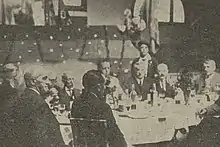 Arana's strategy did not work. Biscay branches of mainstream parties accused him of siding with Basque separatism.[88] Basque nationalists remained adamant and negotiations on would-be electoral alliances failed.[89] The Carlist Junta Central, in 1918 largely decomposed and disoriented, banned alliances with "enemies of Spain"; Arana blamed Ignacio González de Careaga, another Carlist politician from Bilbao and at the time the secretary of Junta Central, for instigating a campaign against him.[90] In early 1919 the Biscay Junta Señorial declared that they were not obliged to follow recommendations from the Madrid headquarters; Arana issued a manifesto which voiced both against designs of "Estado Vasco" on the one hand and against "régimen centralista y opresor" on another.[91] The conflict seemed solved when Jaime III returned from wartime house arrest in Austria and dissolved the central executive, result of the long-standing fray with the Mellistas.[92] However, Arana was already tired; quoting health reasons he handed the new party leader Pascual Comín his resignation note. He took part in the grand Carlist rally known as Magna Junta de Biarritz before in December 1919 his request was granted.[93]