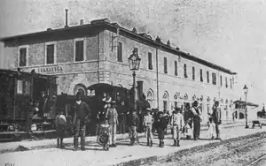 The line between Cortona (now Camucia-Cortona) and Chiusi was opened on 11 November 1875. It was decided to build a station at the junction between the two lines because the Cortona station was too far away. The new Terontola station, opened together with the new line to Chiusi, constituted a major junction on the main line of the Italian railway system.[2]