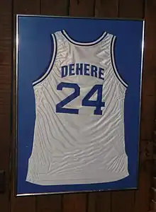 Dehere played for Seton Hall from 1989 until 1993, where he had held the school and conference record with 2,494 career points, as well as school career records for 3-point field goals made and 3-point field goals attempted.[3] Dehere also holds single season records for 3-point field goals made and 3-point field goal percentage.[4] He was named Big East Player of the Year in the 1992–93 season, as well as Conference Tournament MVP.