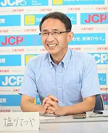 Tetsuya Shiokawa (塩川鉄也 Shiokawa Tetsuya) is a Japanese politician and member of the House of Representatives for the Japanese Communist Party.[1] He is against the consumption tax, saying that it is unfair for small businesses.[2]