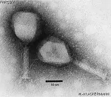 | Electron micrograph of two virions of genus Tequatrovirus | |