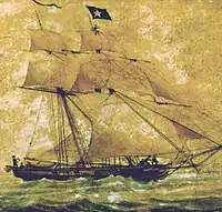 The Texan schooner San Antonio was a two-masted schooner of the Second Texas Navy from 1839-1840. She was the sister ship of the San Jacinto and the San Bernard. In 1840, San Antonio was part of the Texas Navy flotilla led by Commodore Edwin Ward Moore which was dispatched to assist Yucatecan rebels that had taken up arms against Mexico. In February 1842, while re-provisioning in New Orleans, the crew of the San Antonio mutinied and the Lieutenant was killed. This was the only mutiny in the history of the Texas Navy. That fall, the San Antonio sailed for Campeche and was never heard from again.