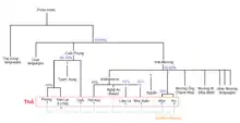 Thổ is a heterogeneous group; thus, local groups have distinct languages. However, all of Thổ languages belong to Vietic branch . Nguyễn Hữu Hoành (2009) classify Thổ languages into 5 groups base on their position in Vietic branch.[3]