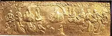 The Thathera communities of Punjab played a prominent role in developing the Sikh School of metal relief artwork.[1][2] Many of the surviving gilded brass and copper panels affixed to the edifices of the Golden Temple or Gurdwara Baba Atal Rai were crafted by Thathera craftsmen or guilds in the 19th and early 20th century.[1] The most renowned Thatheras for creating metal panel art were located in Kucha Fakirkhana, Lahore.[1] Only three or four Thathera families in Amritsar have preserved the knowledge on how to execute this form of metalworking art at present.[2]