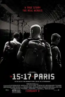 - ↑ D'Alessandro, Anthony (October 24, 2017). "Clint Eastwood's 'The 15:17 To Paris' Gets February 2018 Release Date". Deadline Hollywood. Retrieved October 24, 2017.