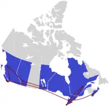 The Amazing Race Canada 9 is the ninth season of The Amazing Race Canada, a Canadian reality competition show based on the American series The Amazing Race. Hosted by Jon Montgomery, it featured ten teams of two, each with a pre-existing relationship, in a race across Canada. The grand prize included a CA$250,000 cash payout, a trip for two around the world, and two Chevrolet Colorado ZR2s.[1] This season visited six provinces and travelled over 12,000 kilometres (7,500 mi). Starting in Winnipeg, racers travelled through Manitoba, Alberta, British Columbia, Ontario, Quebec, and Nova Scotia before finishing in Halifax, Nova Scotia. A new twist introduced in this season was the Assist, which allowed teams to only perform part of select tasks. The season premiered on CTV on July 4, 2023 and concluded on September 19, 2023.[2][3]