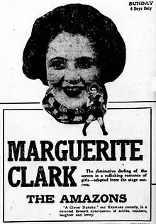 The Amazons is a 1917 American silent comedy film directed by Joseph Kaufman and starred Marguerite Clark, Elsie Lawson, and Helen Greene. The film was based on the 1883 play of the same name by Sir Arthur Wing Pinero, and adapted for the screen by Frances Marion. It was produced and distributed by Famous Players–Lasky and distributed by Paramount Pictures under the Famous Players–Lasky name.[1] The film is now presumed lost.[2]