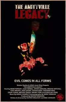 The Amityville Legacy (also known as Amityville Toybox) is a 2016 American horror film written and directed by Dustin Ferguson and Mike Johnson. It was released direct-to-video, and is the fifteenth film to be inspired by Jay Anson's 1977 novel The Amityville Horror.[1] Mark Popejoy stars as Mark Janson, a father who begins murdering members of his own family after being gifted an evil cymbal-banging monkey toy that was taken from 112 Ocean Avenue, a haunted house in Amityville, New York.[2][3]